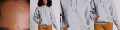 4.7-ounce, 100% cotton jersey 60/40 CVC cotton/polyester (Heathers, Safety Green, Safety Orange) 90/10 CVC cotton/polyester (Athletic Heather) Double-needle coverstitching on front neck and hood hem Shoulder to shoulder taping 1x1 rib knit cuffs Classic fit Tear-away label